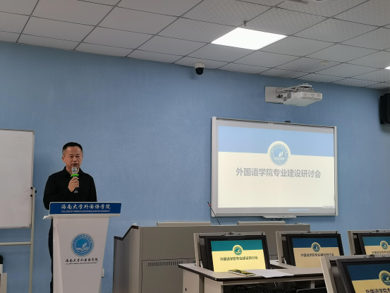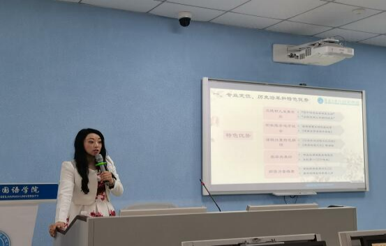 商务英语专业刘素君主任就商务英语专业的培养目标、专业历史、发展计划进行了介绍。商务英语专业通过个性化的培养方案和完善的课程体系,为培养符合海南自贸港建设性人才做出了贡献。商务英语系针对自贸港的建设创建了一系列课程;率先引进了爱丁堡公司嵌入式商务英语课程,开展中外课程合作育人。