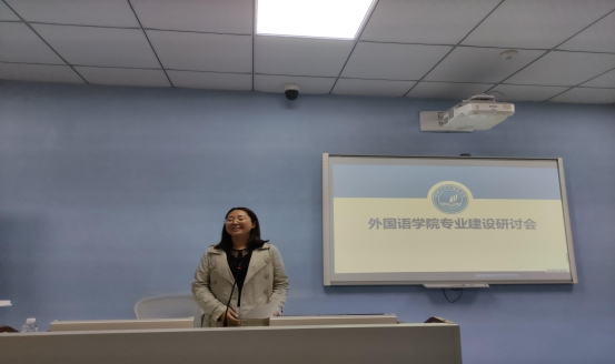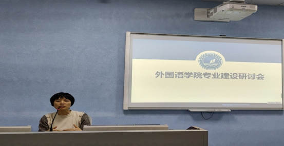 杨帆主任从立德树人成果突出、积极服务地方社会、课程设置特色鲜明、教学效果好、团队力量雄厚5个方面展示国家级一流专业日语专业的建设情况;介绍了日语专业近三年获省部级及以上成果;提出近期目标:建设学习研究型团队,打造省级国家级一流课程。