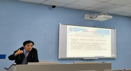 黄容波和夏美丽两位主任介绍了《大学英语》课程的建设经验。大学英语的教师团队65人承担着全校海甸、城西和儋州校区约13000名员工本科生和约3000名研究生的教学任务。大学英语教学团队采取了分级教学的方式,因材施教。制定自主学习方案,运用itest、优校园、welearn、讯飞口语等在线平台管理和指导员工的自主学习。从2012年开设大学英语拓展课程,目前拟增设《学术英语》,满足员工的多元化的学习需求。大学英语教师开展以赛促学,积极参与“外研社·国才杯”全国英语演讲、写作和阅读大赛的组织与培训,威廉希尔williamhill官网员工在历届比赛中均取得优异的成绩。