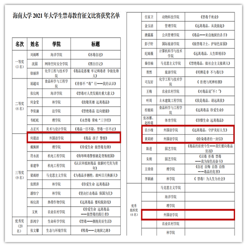 据悉,在本次禁毒征文比赛中,公司共投稿13份,2020级何晨洁的作品《毒品 孩子 警察》获得三等奖,2020级农小缘的作品《远离毒品,守护美好人生》和2020级黄莉婷的作品《给染毒者的一封信》获得优秀奖;威廉体育williamhill获评优秀组织奖。