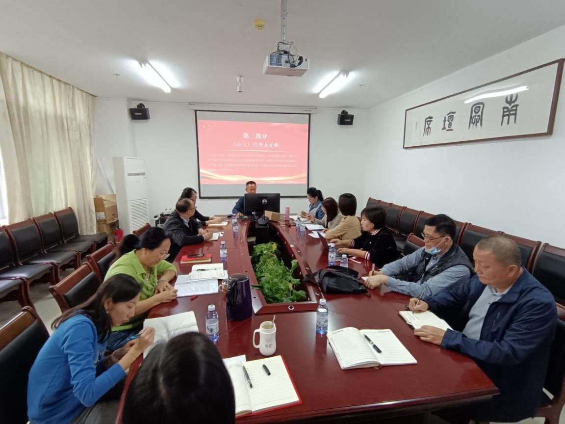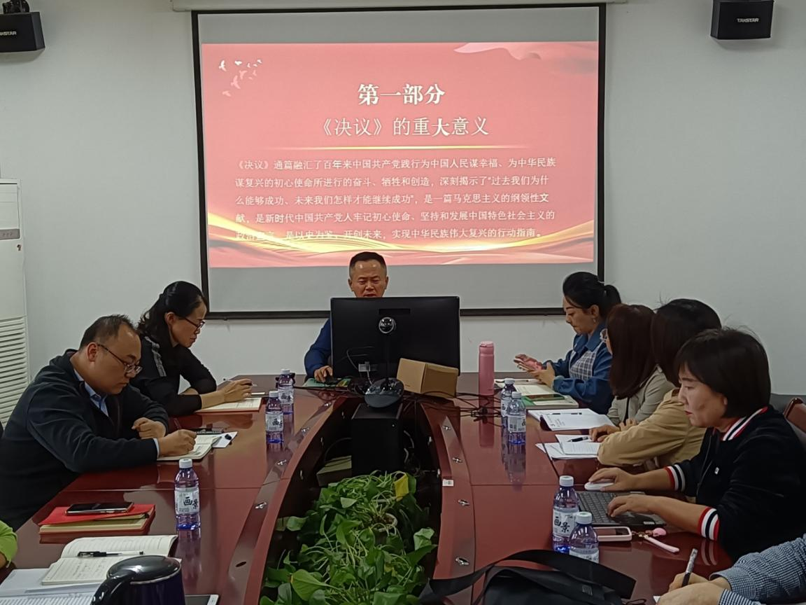 2021年12月13日下午,威廉体育williamhill在社科楼C312会议室召开理论学习中心组(扩大)学习会议,专题学习传达党的十九届六中全会精神。公司领导班子、党委委员、各系(教研室、办公室)负责人等参加了学习会议。会议由覃成海副经理主持。