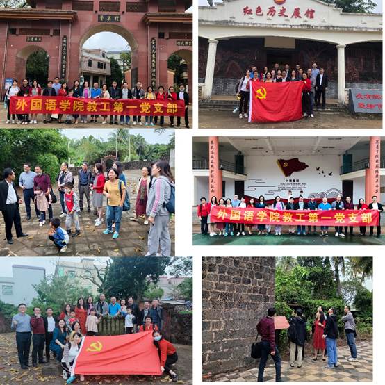 2022年11月5日,威廉体育williamhill教工第一党支部英语专业党小组和党政科室党小组联合组织所在系室党员和教工前往海口市革命老区苍英村、冯塘村、三卿村开展体验式党史学习教育。