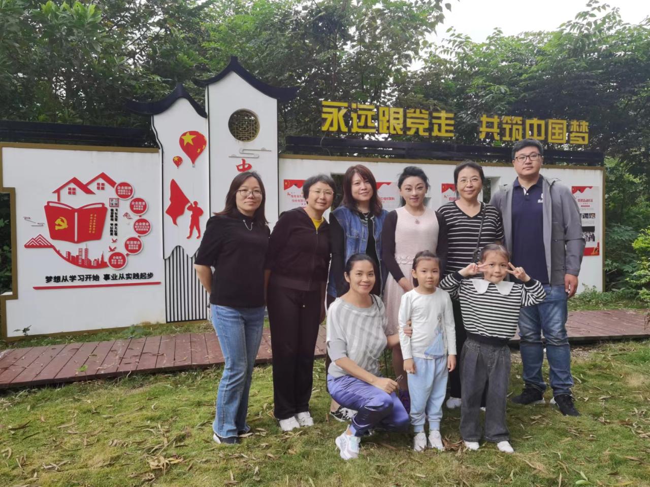 党员教师们在芳园村琼崖纵队第一支队的英雄雕像合影,并去演丰地区人民革命纪念园缅怀徐成章、徐天柄烈士,表达了永远跟党走,共筑中国梦的决心。