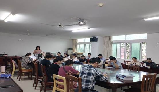 首先,党员教师们就11月13日的实践活动进行了交流和总结,分享在革命老区苍英村和新农村建设示范村施茶村参观学习时的所见所闻和体会,党员教师们再次深刻体会到习近平新时代中国特色社会主义思想、海南自贸港建设给乡村发展带来的巨大改变;回顾起在革命老区苍英村红色革命文化展馆前重温入党誓词时的庄严情景,党员教师们的思想得到进一步的净化和升华。大家纷纷表示此次活动增强了党员们的党性意识和责任担当,密切联系了群众,从而进一步增强了党员教师们之间的凝聚力。