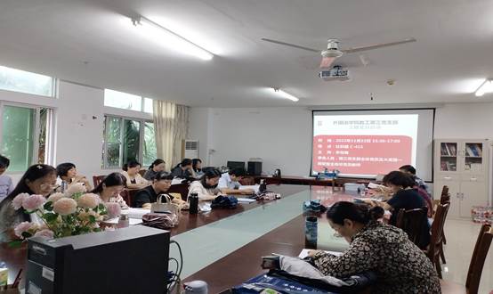 接着,李双梅书记组织党员教师们深入学习党的二十大精神,深刻领悟习近平新时代中国特色社会主义思想精髓,理解好当代中国、理解好中国式现代化。党员教师们表示将学习党的二十大精神所获融入今后的课堂教学中,培养有家国情怀、有全球视野、有专业本领的新时代建设“三有人才”,向世界传播中国故事,传播中国智慧。