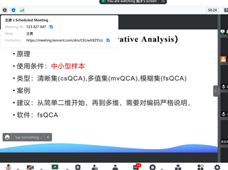 第二场专题讲座由董洋老师领读研讨,主要例解了定量研究在应用语言学的应用问题。讲座伊始,董洋老师向同学们简要介绍了应用语言学的主要概念,提醒同学思考同语言有关的多种社会问题,尤其是与英语学习相关的语言教学问题。总体上,董老师指出,相比定性研究,定量研究拥有更强的客观性和可复制性。因此,本专题基于近10年中外核心学术期刊(SSCI和CSSCI)文献的梳理结果,筛选采用定量研究实验方法开展应用语言学研究的典型文献,进行解释和说明。通过介绍主要的定量研究方法,包括QCA、元分析、路径分析、差异性比较分析,结合具体案例以及丰富的图例,向同学们介绍了运用这些研究方法开展实证语言教学研究的重要步骤和结果。同时,还结合相关论文,介绍了语言研究中提取研究样本,对统计数据进行科学检验的方法手段。通过比较常用四种定量研究法的优缺点,针对不同应用语言学的、选题提出定量分析建议,拓宽了员工对专业发展方向的认识和理解,激发同学们学习语言、分析语言现象、思考相关语言研究议题的兴趣。