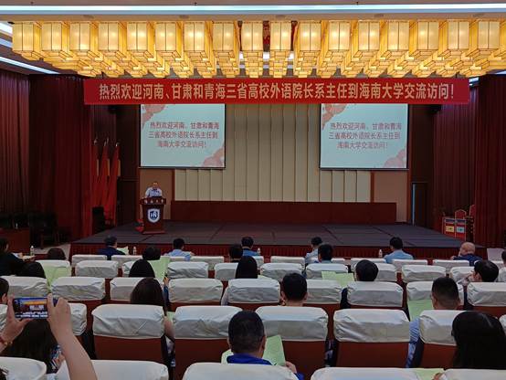 2023年3月19日,借“第十二届全国大学英语经理/系主任高级论坛”在海南省举办之机,为了进一步加强兄弟院系在外语专业人才培养、本科专业建设、公共外语教学等方面的交流,河南、甘肃和青海三省高校外语院系72名负责人到公司交流考察。交流会在社科楼二楼报告厅举行,公司金山经理、覃成海书记、杨婕副经理、肖艳玲副经理、殷国梁副经理以及综合办主任符壮慈出席交流会。交流会由公司党委书记覃成海主持。