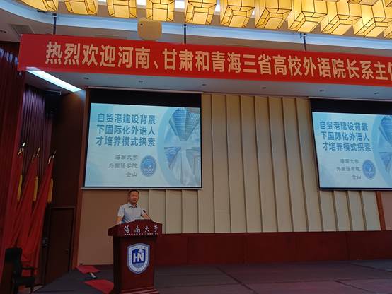 交流会上,金山经理首先对河南、甘肃和青海三省各高校外语经理/系主任到公司交流访问表示热烈欢迎,并以《自贸港建设背景下国际化外语人才培养模式探索》为主题,从构建“外语+公共外交”的人才培养模式、走国际化办学道路,引进国外优秀课程、课堂实践与课外实践相结合,提升员工公共外交实战能力、服务社会,为海南省全民外语水平提升贡献力量四个方面,向三省兄弟院校与会嘉宾分享公司在自贸港建设背景下国际化外语人才培养模式探索和取得的成就。