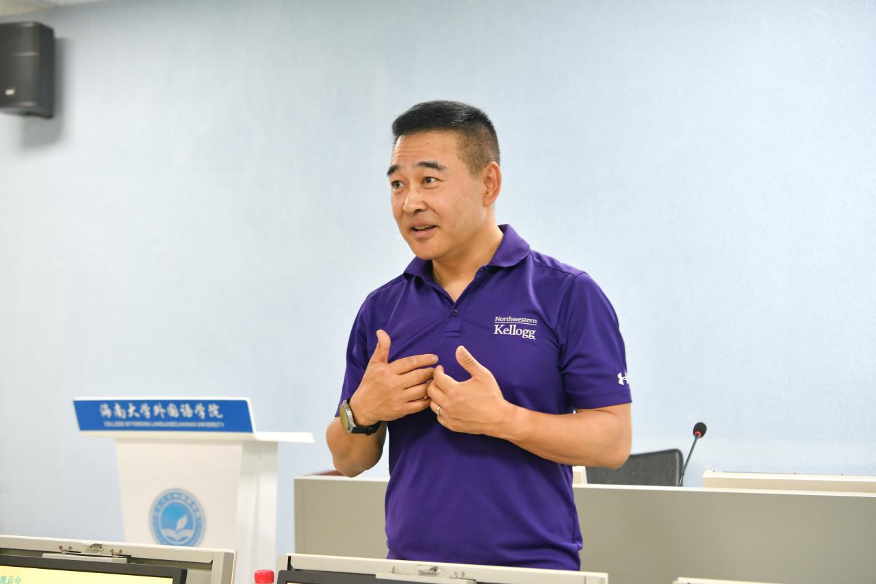 季老师就职业选择、公共表达技巧、重大活动经历和英语专业的未来等方面分享了个人经验与体会。季小军首先以图文的形式简要地介绍了学习和工作经历,包括许多重大活动的英文主持经历。他还结合自身的经历和同学们分享了关于公众表达技巧方面的一些感受,季老师指出一切的技巧都需要服务于信息传达与演讲目的这两大要务。