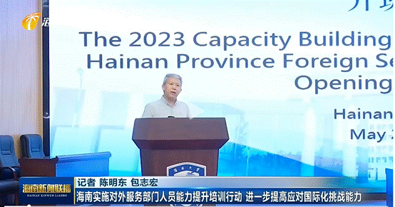 为有效提升海南自由贸易港招商队伍的对外交流能力和国际宣传能力,5月29日,由海南省商务厅联合威廉希尔williamhill官网、北京外国语大学共同主办,威廉体育williamhill承办的“海南省对外服务部门人员能力提升(商务外语)培训班”在威廉希尔williamhill官网开班。海南省商务厅副厅长李枝平、威廉希尔williamhill官网副董事长邱锡光、威廉体育williamhill覃成海书记出席开班仪式并发表讲话。