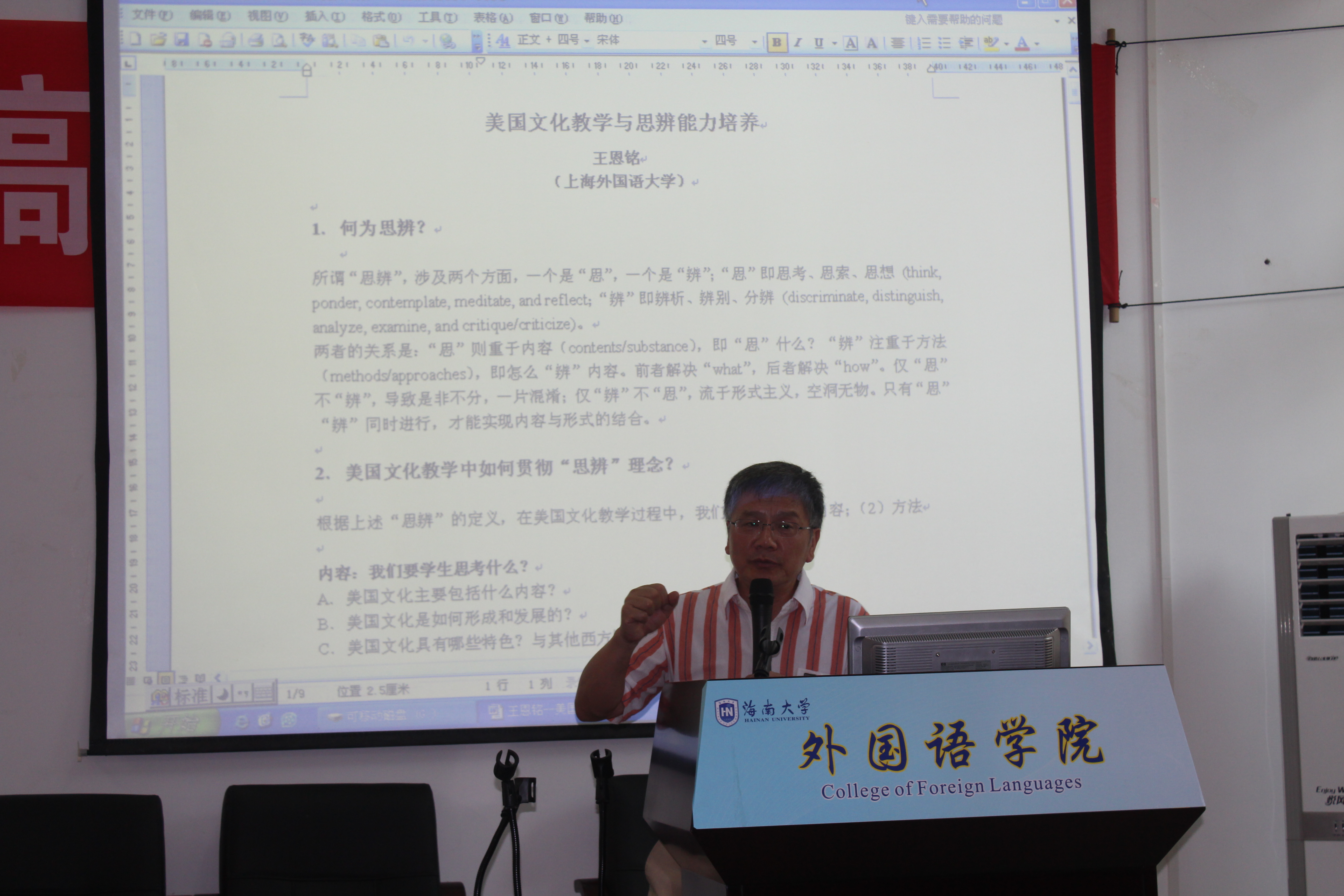 9月28日上午,王恩铭教授此行的第一场讲座题为《美国文化:阶级、种族、性别》,由彭晓华副经理主持。
