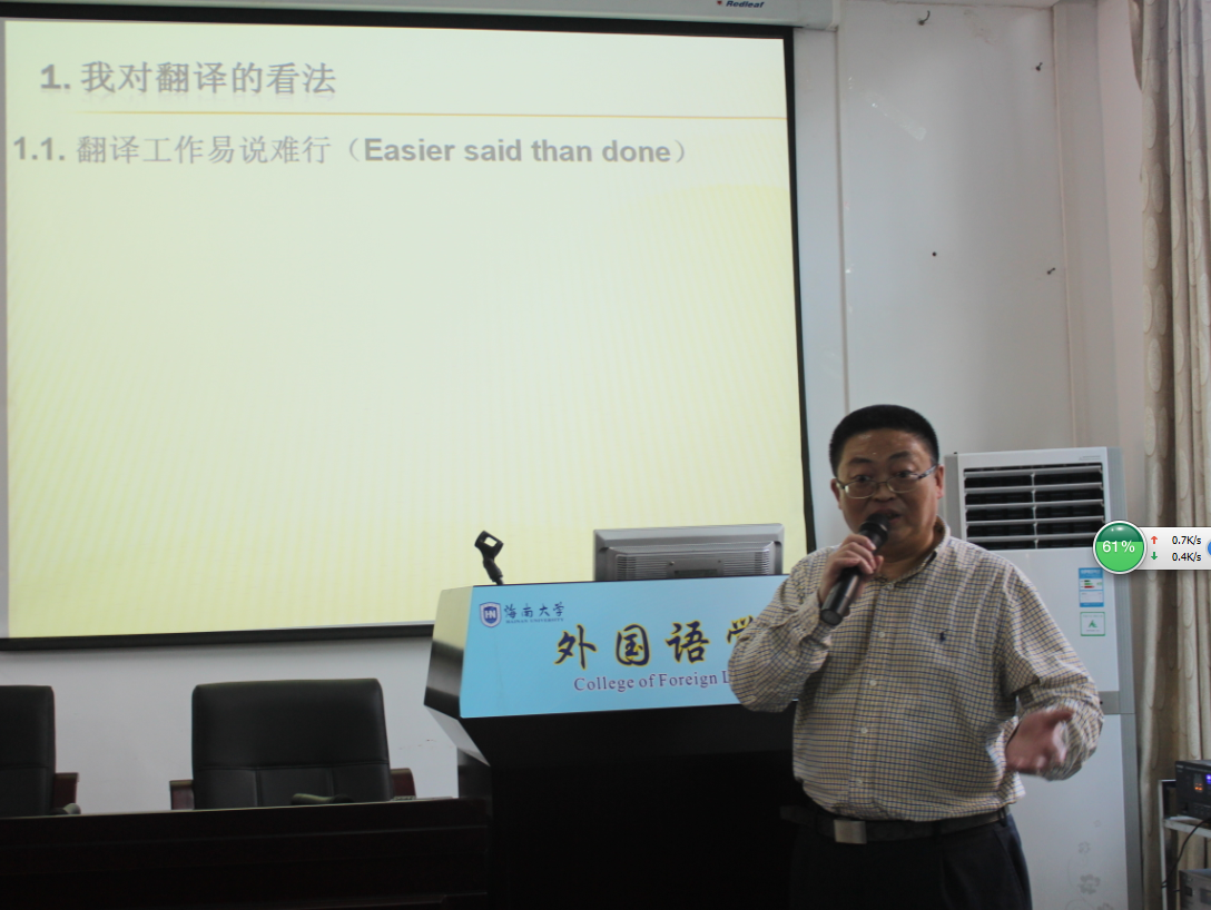 耿教授的讲座展现了其扎实的双语功底,独立的探究精神和知难而进的学术勇气,引发了师生们对翻译理论和实践的新思考。讲座在热烈的掌声中结束。