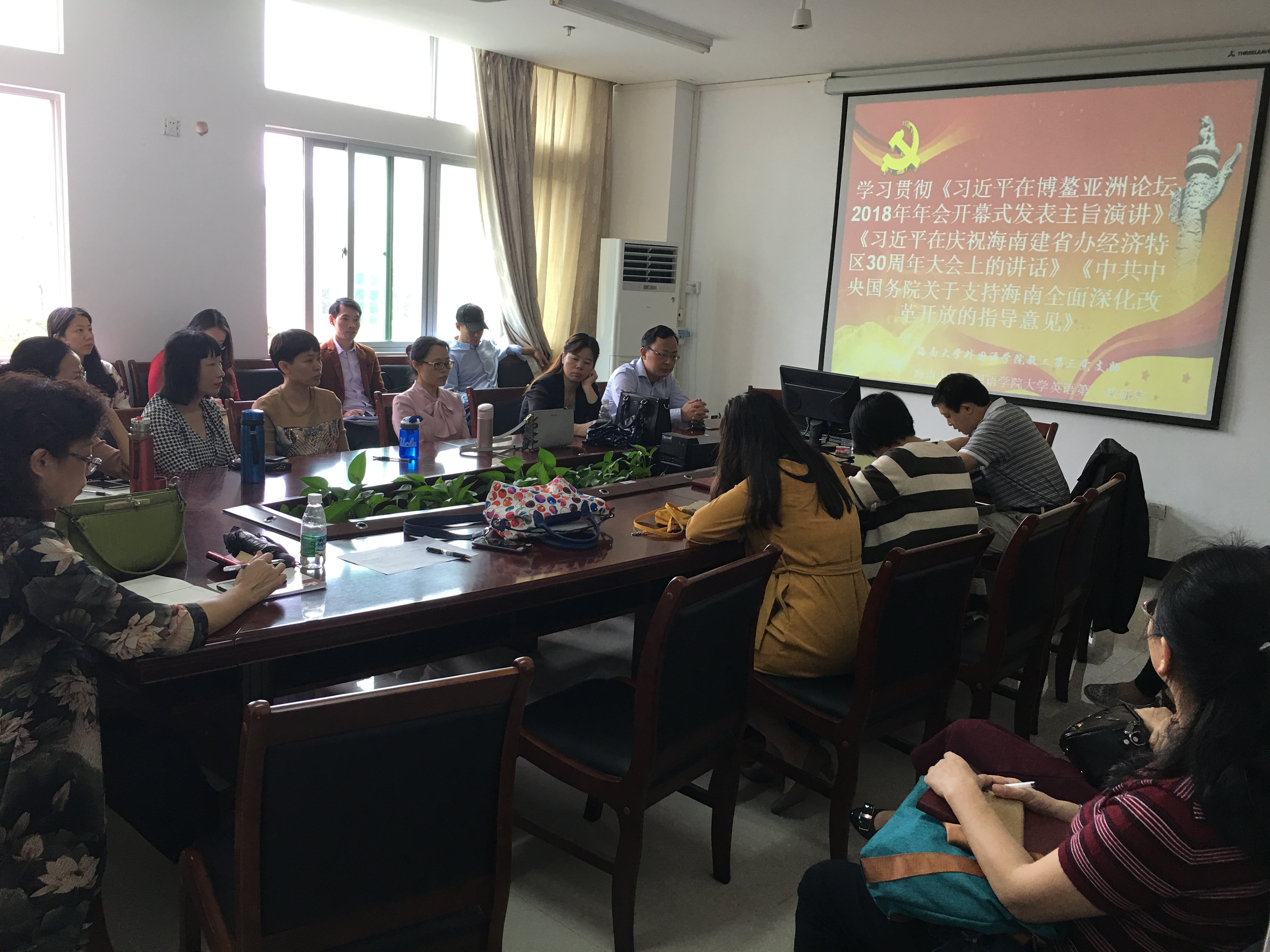 在会上,大家纷纷发言,畅谈了自己的学习心得,一致认为习近平总书记的重要讲话,是赋予海南经济特区改革开放新的重大责任和使命,也为海南深化改革开放注入了强大动力,是海南发展面临的新的重大历史机遇,也是威廉希尔williamhill官网面临的重大发展机会。大家都因习近平总书记的讲话,为海南发展得到党中央的大力支持而欢欣鼓舞,纷纷表示要积极投身海南特区和自贸区建设新的征程,结合自身本职工作,以实际行动为海南的发展献计献策,为把威廉希尔williamhill官网建设成为“双一流”大学而努力奋斗!