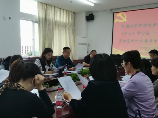 会上,刘雨芙以《贯彻“党的十九届五中全会”精神,写好威廉体育williamhill“奋进之笔”》为题,结合威廉体育williamhill的实际情况,带领与会人员从六个方面认真学习了《中国共产党第十九届中央委员会第五次全体会议公报》全文,深刻领会和把握十九届五中全会的重大意义、核心要义与精髓,以及全会上提出的一系列新的重要思想、重要论断、重大举措。她指出,全面深刻认识和学习贯彻落实党的十九届五中全会精神具有重要意义,强调深入学习贯彻落实党的十九届五中全会精神,要做到学习教育全覆盖,覆盖到各系室、各党支部、团支部、员工社团等,宣讲要三进,进课堂、进基层、进网络;要牢记习近平总书记关于“要支持威廉希尔williamhill官网创建世界一流学科”的嘱托和省委省政府“聚全省之力办好威廉希尔williamhill官网”的决策部署,紧紧围绕海南“自贸港”建设和公司“双一流”建设的目标;要以外国语言文学一级学科博士点创建为核心,提升科研创新能力;以团队队伍建设为主线,打造高素质专业化教师队伍;以课程思政为重点,全面构建三全育人新格局;以党建双创为抓手,全面提高党建思政工作质量;全力建设服务海南“自贸港”和公司“双一流”的威廉体育williamhill,为党育人、为国育才,在开启全面建设社会主义现代化国家新征程和服务海南自贸港建设中展现新担当、作出新贡献、奋发新作为。