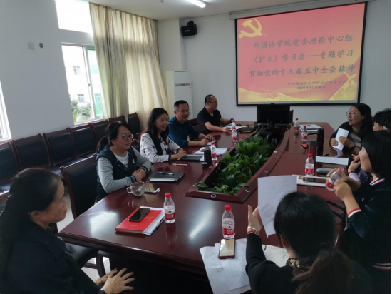 11月30日下午,公司党委在社科楼C312会议室召开理论中心组(扩大)会议,深入学习和贯彻党的十九届五中全会精神。公司党委副书记(主持党委工作)刘雨芙,经理金山,副经理杨婕、肖艳玲、覃成海等公司领导班子和中心组成员,各办公室主任,各系(教研室)主任参加了学习会。会议由刘雨芙主持。
