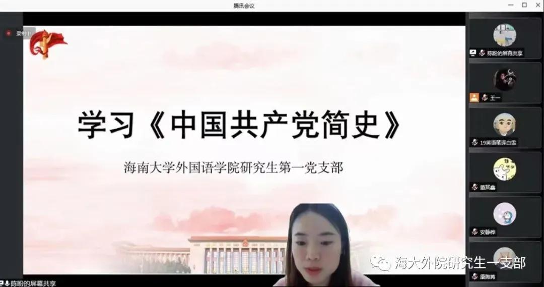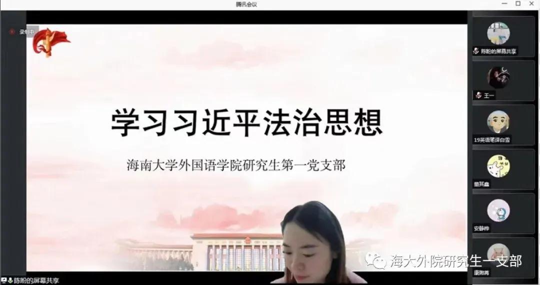 2021年11月20日,威廉体育williamhill研究生党支部在线上开展了11月主题党日活动,本次主题党日活动在支部书记陈盼的带领下,全体党员集体学习了《中国共产党简史》和习近平法治思想。